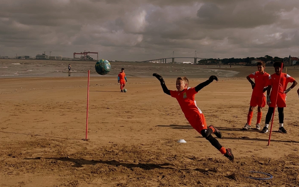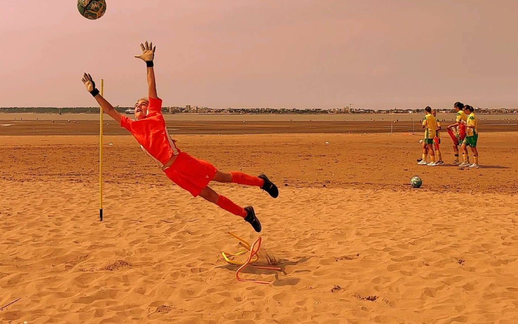 Sur le sable ou sur les terrains, Les gardiens profitent des conseils et des corrections de leur entraîneur.